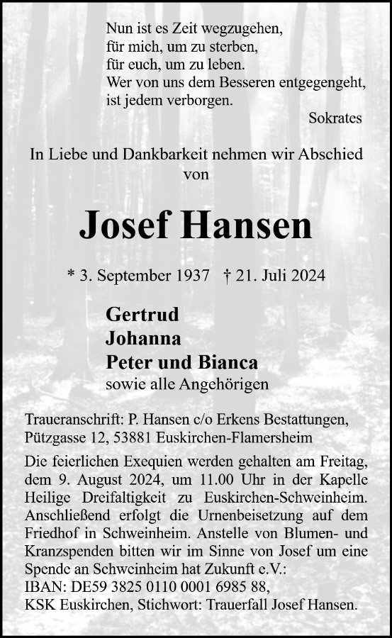Josef Hansengestorben am 21. Juli 2024
